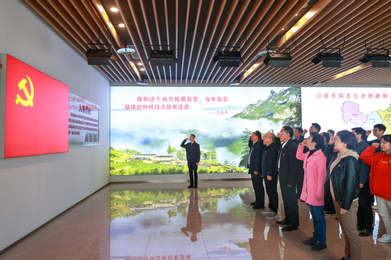 在政和县廖俊波先进事迹传习地,大家在工作人员的讲解下,深刻感悟廖俊波同志对党忠诚的政治品质、勤政为民的公仆情怀、大胆创新的敬业精神,以及敢于担当、求真务实的工作作风,廉洁奉公、无私奉献的高尚品格,并重温入党誓词。