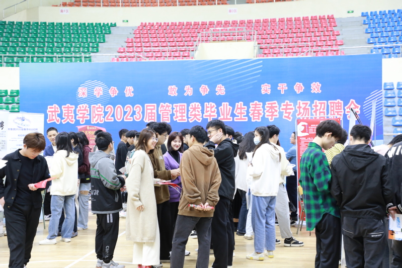 为深入贯彻党的二十大精神,扎实开展学习贯彻习近平新时代中国特色社会主义思想主题教育,强化“我为师生办实事”工作成效,推动毕业生充分高质量就业。4月25日,由学生工作部主办,旅游学院、商学院、海峡成功学院联合承办的2023届管理类毕业生春季专场招聘会在校体育馆顺利举行。