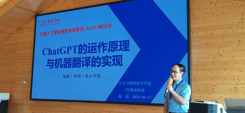 我校人文与教师教育学院副教授魏琛应南山书院院长庄舍先生的邀请,参加了研讨会,并在大会作了题为《ChatGPT的运作原理与机器翻译的实现》的主题报告,得到了与会全体专家学者的一致认可。