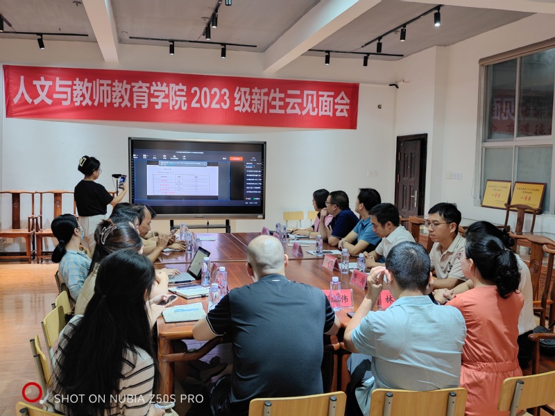 新学年伊始,为帮助大一新生提早熟悉校园环境,了解校园文化并合理规划自己的大学生活,9月4日晚,人文与教师教育学院召开“文以致远,‘新'火相传” 2023级新生云见面会,文教学院院领导、系主任、教科办主任、团委副书记、新生辅导员和新生助理辅导员代表参会,2023级新生线上参会。院党委副书记陈荣旺主持见面会。
