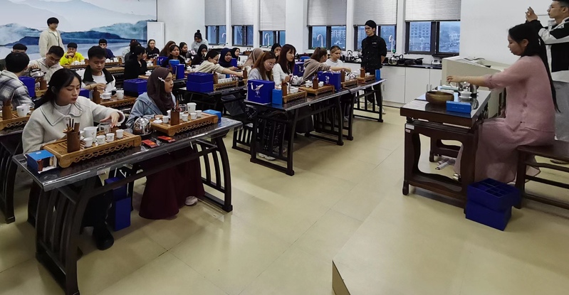 活动现场,培训师热情地向留学生们介绍中国茶文化的起源、发展和制作工艺,并着重介绍作为“万里茶道”源头的武夷山的岩茶及其冲泡方式和注意事项。透过历史的烟尘,留学生们感知武夷茶文化的深厚底蕴,领略其独特的魅力。随后,在茶艺师的指导下,留学生们亲自动手体验泡茶的过程。他们纷纷表示,通过此次活动,不仅学会如何泡出一杯香醇的茶,更是深刻感受到武夷茶文化的独特魅力。从茶叶的选取到泡茶的技巧,从茶具的使用到品茗的过程,每一个细节都蕴含着深厚的文化内涵,让他们更加热爱中国文化和艺术。