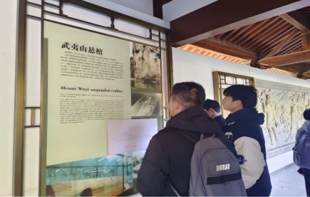 实践团队追随习近平总书记的足迹进入武夷山景区,在朱熹园等地深入了解武夷山的历史人文、自然风光,切身感受到祖国的发展变化、中华民族的历史底蕴、中华文化的博大精深和独特魅力。在云窝,实践团队来到“这是中华民族的骄傲,双世遗”石刻前,大家在此重温习近平总书记在武夷山考察时的重要讲话精神,加深对讲话内涵的理解把握。在武夷春秋馆,实践团队聆听了对武夷山悬棺的介绍,对古闽人的智慧赞不绝口。