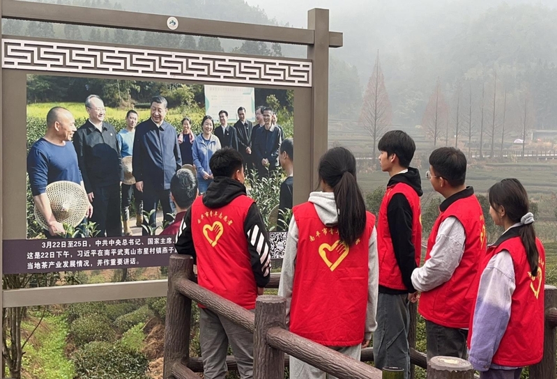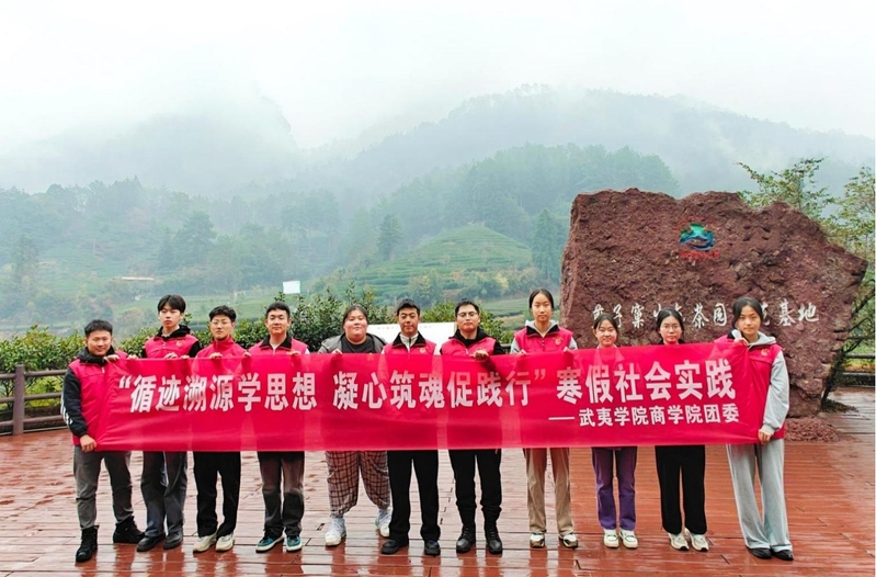 寒假期间,我校组建实践团队追寻习近平总书记的足迹,来到武夷山燕子窠生态茶园。行走在绿水青山间,云雾缭绕,望着眼前一排排梯级而上的茶树,实践队成员认真重温学习习近平总书记的重要讲话,深刻领悟到统筹做好茶文化、茶产业、茶科技这篇大文章,坚持生态文明绿色发展,强化品牌意识,优化营销流通环境,打牢乡村振兴产业基础的重大意义。