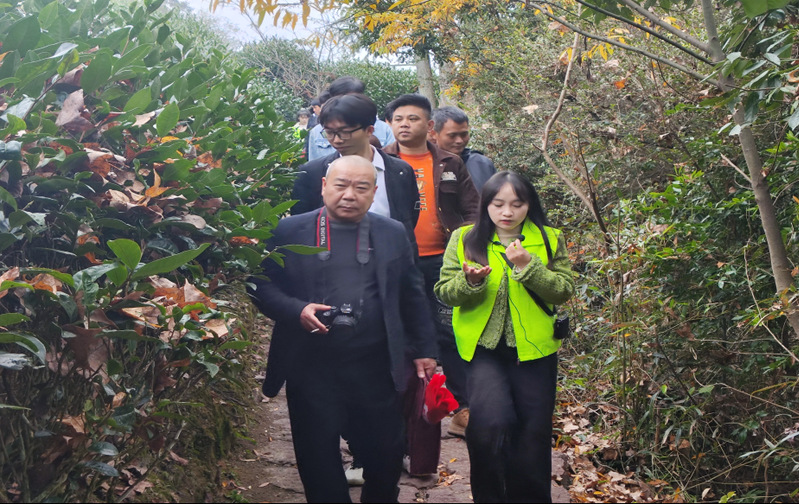 茶与食品学院的“燕子窠生态茶园志愿者服务队”前往燕子窠生态茶园为到访的来宾们提供讲解服务,介绍生态茶园的背景和茶园建设模式,推广燕子窠“冬种油菜、夏种大豆”的管理模式。志愿者团队详细地向访客介绍燕子窠生态茶园不同品种的茶叶,分享燕子窠生态茶园的生态模式与其中的科学含义。在讲解过程中,志愿者始终保持着高涨的热情,积极与来宾们进行交流互动。茶叶生产,需要天时地利,也需要科技赋能,燕子窠生态茶园的套种生态循环模式既提高生产效率又优化土地发展,对武夷山茶产业的发展有着重大的影响。如今,生态茶园模式的广泛推广运用,孕育和滋养着越来越多的茶业科技管理人才,不仅激发茶农们突破传统种植管理模式的勇气和智慧,也引导他们进一步运用科学方法推动茶产业的可持续发展。