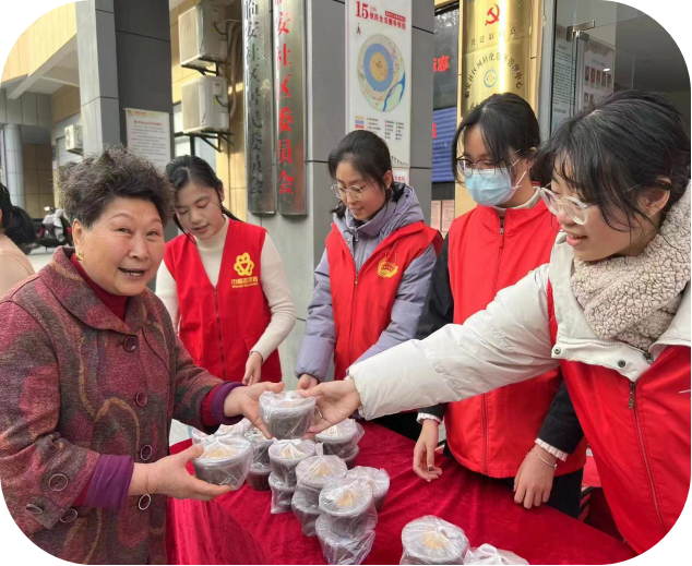 浓情腊八节,粥到暖人心。腊八节作为中国传统文化的精髓之一,承载着传统价值观、人文精神和民族情感。实践团队在武夷山市临安社区开展“浓情腊八节,粥到暖人心”志愿服务。队员们精心挑选莲花香米、圆糯米、黑米、西米、花生米、红枣、红豆、枸杞、桂圆干等腊八粥的原料食材,在工作人员的指导下熬制了香气四溢的腊八粥,并将带着祝福的腊八粥递送到每一位居民手中,让这份甜蜜的味道成为大家共同分享的暖意。