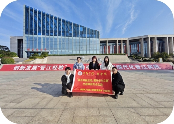 为深入学习贯彻习近平新时代中国特色社会主义思想,在实践中学习传承、创新发展“晋江经验”,激励青年大学生从中汲取奋进力量,寒假期间,商学院“感悟闽人智慧,厚植家国情怀”实践队走进晋江经验馆、晋江博物馆开展社会实践活动。