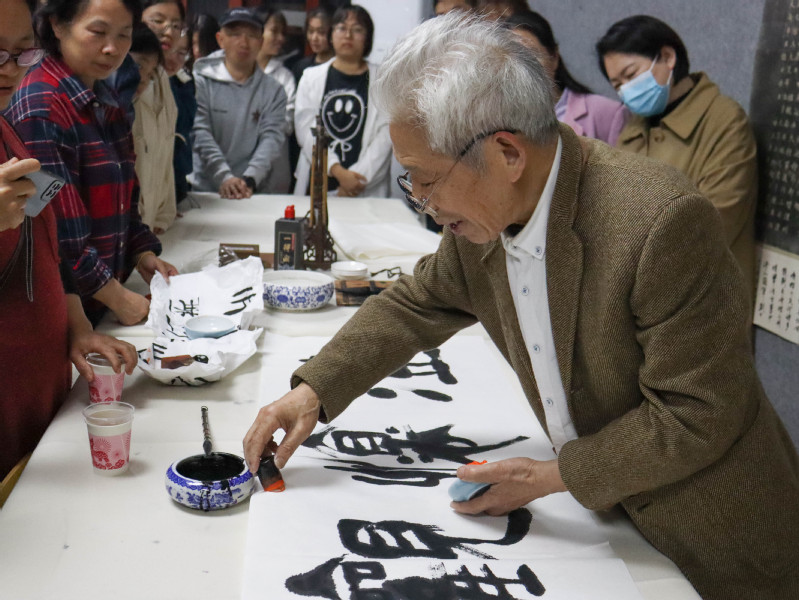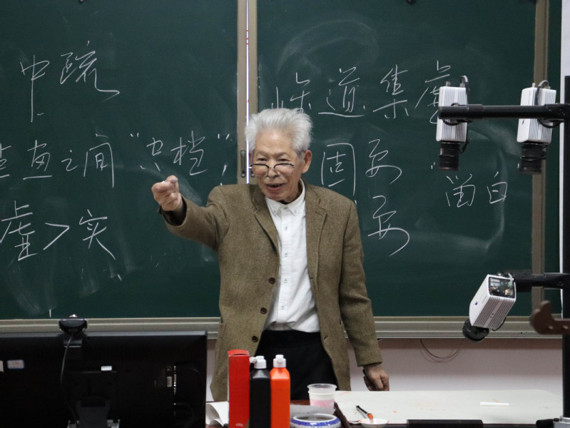 捐赠仪式后,徐良夫老师为师生开设了题为《书法“六中”》的学术讲座,概括了传统书法创作的理论实践、共性的基本原则和法度,并现场挥毫泼墨,为师生演示了粉笔板书、毛笔书写的书写技能,并对师生的书写进行了指导。