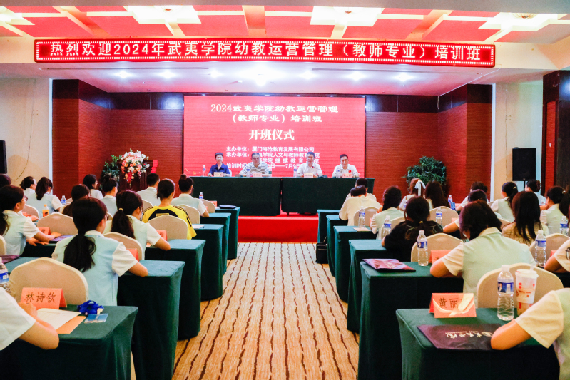 为进一步发挥校企教学实践基地作用,搭建幼儿园专业提升培训平台,7月6日-9日,由厦门海沧教育发展有限公司主办,武夷学院人文与教师教育学院和继续教育学院承办的“2024年武夷学院幼教运营管理(教师专业)培训班”在武夷山开班。厦门海沧城建集团有限公司副总经理、董事、工联主席吴郄泉,厦门海沧教育发展公司党支部书记、总经理林惠荣,厦门海沧教育发展公司总经理助理、教育发展部经理李荣文,武夷学院人文与教师教育学院院长李文斌、党政办副主任欧飞凤出席开班仪式。