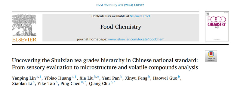 该研究结果以“Uncovering the Shuixian tea grades hierarchy in Chinese national standard: From sensory evaluation to microstructure and volatile compounds analysis ”为题发表在国际期刊《Food Chemistry》(中科院一区TOP,IF=8.8)。林燕萍副教授为论文第一作者,浙江大学楚强研究员为通讯作者,武夷学院为第一完成单位。
