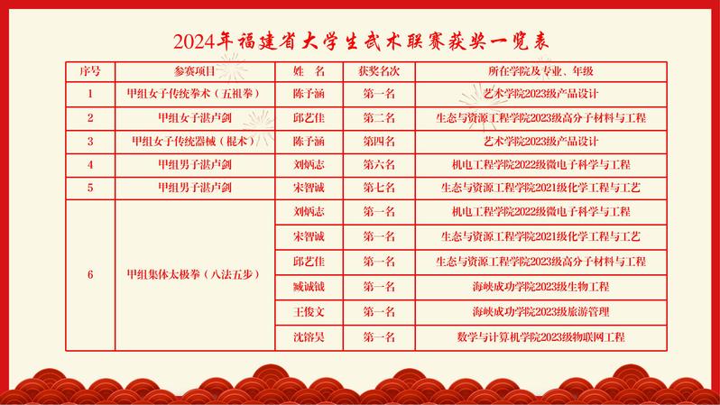 据悉,此次比赛由福建省教育厅主办,厦门大学承办,集美大学体育学院、松溪县人民政府协办。通过比赛,为广大高校学生提供了一个展示自我、交流技艺的平台,不仅推动中华武术在校园的传承与发展,也增强广大青少年对中华优秀传统文化的认同感和文化自信。