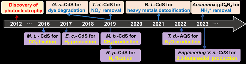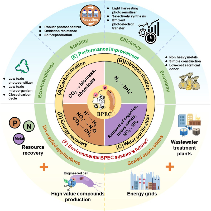 随着微生物光电能营养的发现,刺激了微生物光电化学体系的发展,包括能源生产,固氮和污染物降解等(图2),从而扩大了BPEC技术的适用性。
