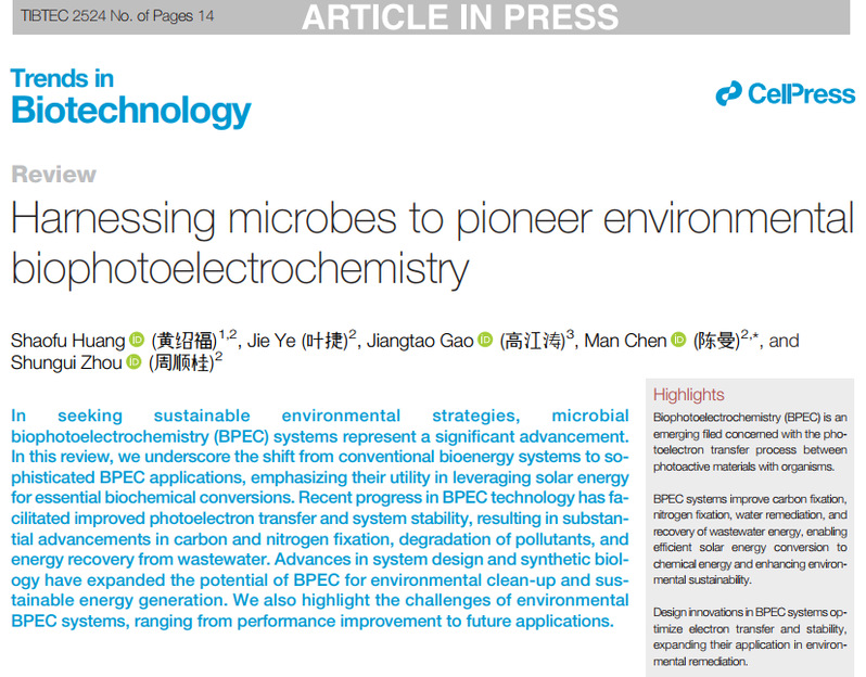 近日,我校生态与资源工程学院土壤健康与调控团队黄绍福博士与福建农林大学周顺桂教授团队合作,受邀在Cell Press细胞出版社综述期刊《Trends in Biotechnology》发表题为:Harnessing Microbes to Pioneer Environmental Biophotoelectrochemistry的高水平综述(IF2024=14.3)。黄绍福博士为第一作者,福建农林大学陈曼副教授为通讯作者,武夷学院为第一单位。