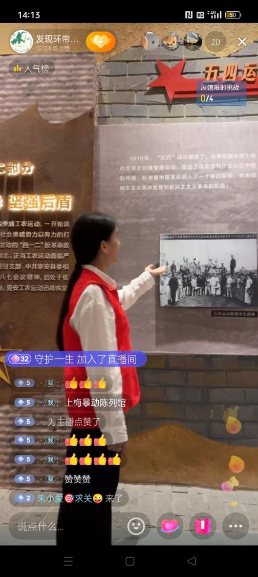 实践队步入上梅暴动陈列馆,看着馆内陈列的文物——土枪、土雷、草鞋……大家深刻感受到革命前辈们为实现民族独立、人民解放而不怕牺牲、矢志奋斗的坚定信念。实践队员在陈列馆中进行了直播,为广大网友讲解馆内陈列的文物,吸引了路人网友观看,获得了一致的好评与认可。