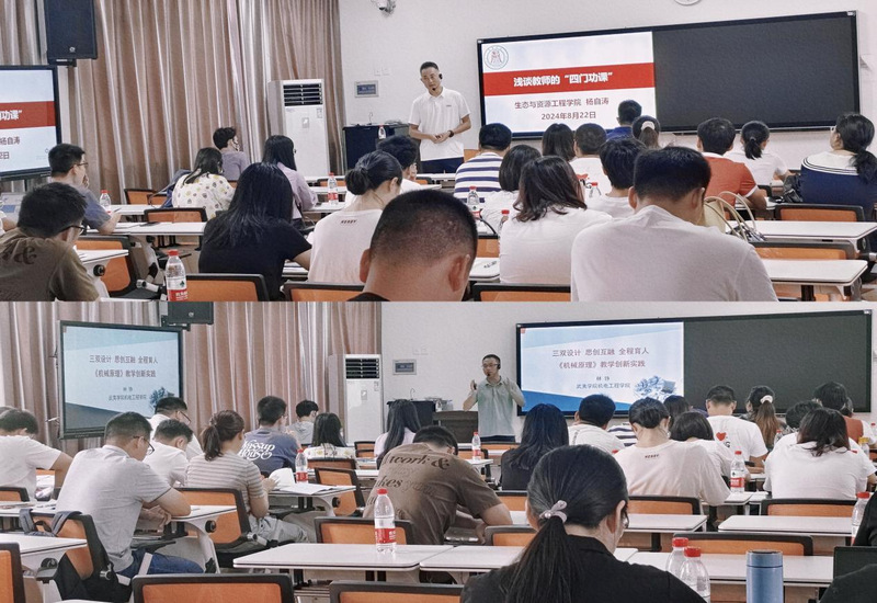 8月22日上午,校生态与资源工程学院杨自涛老师、机电工程学院林铮老师就教学方面与新教师们进行了交流和分享。杨自涛老师结合自身丰富的教学经验,讲述当教师的“四门功课”,从“如何说”“学什么”“写什么”“怎么逗”四个方面,深入浅出地给老师们分享了当教师的四个基本功,并提出要为学生带来有温度、有深度、有高度的“三度”课堂,引导学生厚植家国情怀,树立为国成才的学习观。林铮老师则从课程建设方面跟新入职教师作了经验交流,以其主讲的《机械原理》教学创新实践课程为例,生动讲述了他将“三创”教育内涵融入人才培养全过程,就如何打造融课程教学、实践训练、培育孵化为一体的“三创”教育体系作了指导性的培训。