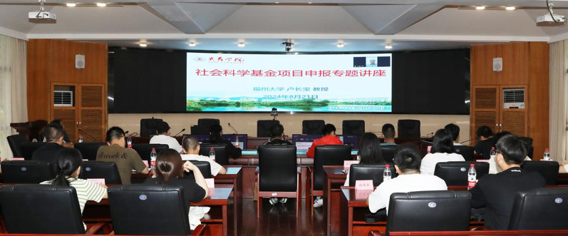 8月21日下午,特邀福州大学社科处处长卢长宝教授为新入职教师作“社会科学基金申报专题讲座”,卢长宝教授就项目申请书的选题依据、研究内容、研究计划、创新之处、预期成果、参考文献及项目选题等关键点进行全面详尽的阐述分析。