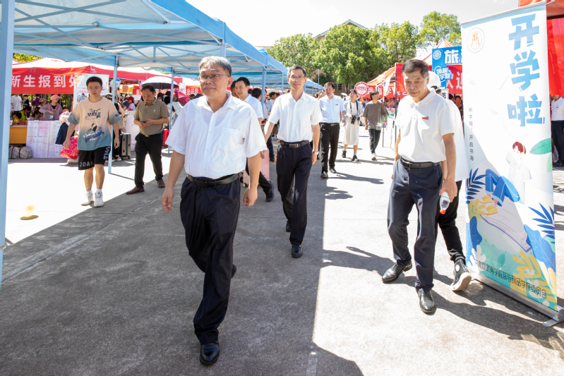 当天上午,校领导庄祥生、吴承祯、杨昇、廖斌、郑细鸣到迎新现场看望慰问现场工作人员和新生、家长们。每到一处,校领导都认真了解新生报到、住宿安排、入学手续、后勤保障等情况,亲切慰问现场工作人员和学生志愿者,对他们热情、周到、细致的服务给予肯定和感谢,并鼓励他们继续发扬奉献精神,强化服务意识,用心用情做好迎新工作,确保每位新生顺利入学,让新生与家长们切实感受到学校大家庭的温暖。
