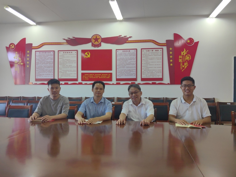 庄祥生书记慰问“国家自然科学基金面上项目”获得者、省高层次C类人才唐家桓(左二),“国家自然科学基金青年科学基金项目”获得者黄绍福(左一),省组引进生、省高层次C类人才纪占华(右一)