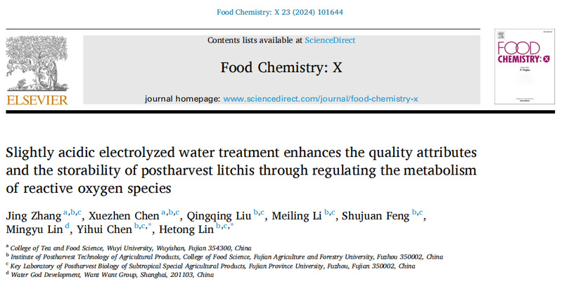 近日,我校茶与食品学院农产品加工与贮藏团队联合福建农林大学林河通教授团队在微酸性电解水调节活性氧代谢提高荔枝贮藏性方面取得重要进展,相关研究以“Slightly acidic electrolyzed water treatment enhances the quality attributes and the storability of postharvest litchis through regulating the metabolism of reactive oxygen species”在国际期刊Food Chemistry: X(中科院一区top期刊,IF=6.443)上发表。茶与食品学院张静副教授与我校联合培养硕士研究生陈雪浈为共同研究第一作者,武夷学院为第一完成单位。