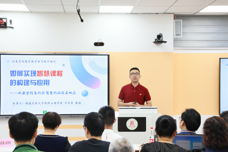 为深入学习贯彻习近平总书记关于教育的重要论述和习近平总书记在全国教育大会上的重要讲话精神,进一步提升我校教师的专业素养,促进教师队伍的专业发展和学校教育教学质量的全面提升。9月19日,教师能力发展中心特邀福建省教学名师、福建农林大学教授刘学莘博士担任主讲嘉宾,为我校教师开展关于教学能力提升及智慧课程建设的专题培训活动,活动包括“教学能力提升”座谈交流及“如何实现智慧课程的构建与应用”专题讲座,采取“线下+线上”的形式开展,各二级学院分管教学副院长、系主任及骨干教师在主会场参加,各二级学院设视频分会场。