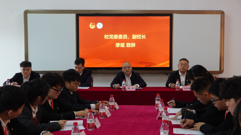 大会在雄壮的国歌声中拉开序幕。廖斌充分肯定了学校学生会组织过去一年的工作,向全校学生会组织和广大青年学子提出三点要求:一是坚定信念,勇做新时代的追梦人。希望我校青年学子志存高远、胸怀大局、心系国家,与时代同步伐,与人民共命运,在实现中华民族伟大复兴的中国梦生动实践中放飞青春梦想、书写人生华章。二是锤炼品德,争做新时代的筑梦人。希望我校青年学子要自觉树立和践行社会主义核心价值观,弘扬中华传统美德,传承红色基因,做坚定的马克思主义者,用青春为中国式现代化挺膺担当。三是勤学善思,勇当新时代的圆梦人。希望我校青年学子苦练本领、增长才干,把学习作为首要任务,努力掌握科学文化知识和专业技能,了解国情民情,在实践中增长才干、锤炼意志、砥砺品格,不断提高自身的综合素质和创新能力。