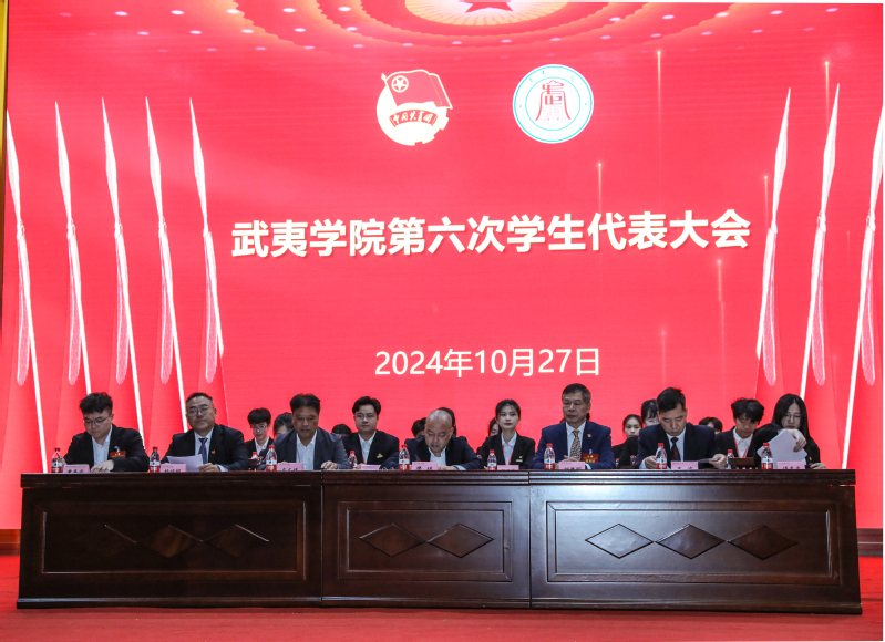 10月27日,武夷学院第六次学生代表大会在大学生活动中心召开。校党委委员、副校长廖斌出席会议。来自各学院的150名学生代表参加大会。福州大学、闽江学院、三明学院、龙岩学院、福建林业职业技术学院等16所高校学生会发来贺信贺电。