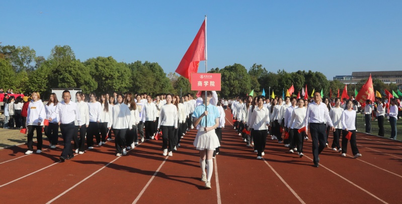 伴随着雄壮的《运动员进行曲》,国旗方阵、会徽方阵、花束队、彩旗队、裁判员队伍及各学院运动员代表队方阵有序入场,大家精神饱满,充分展示出当代大学生良好的精神风貌。