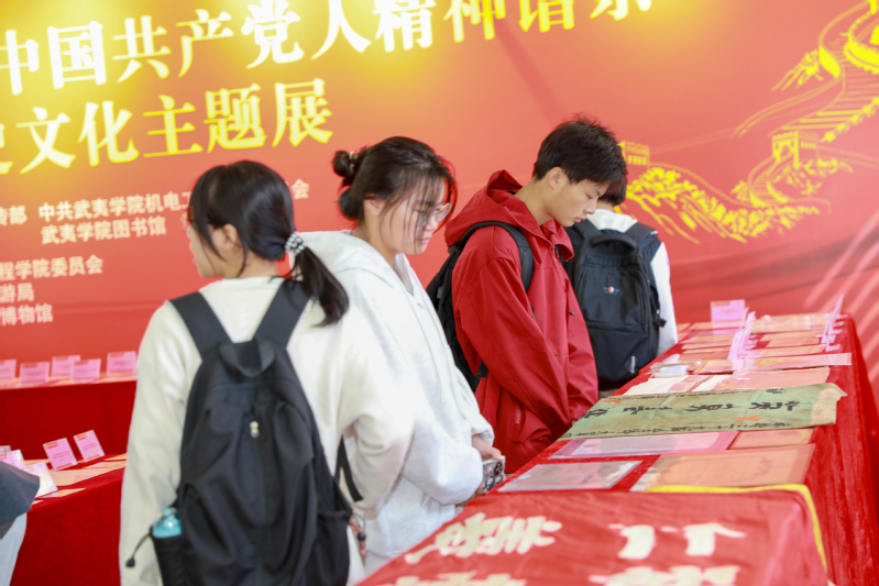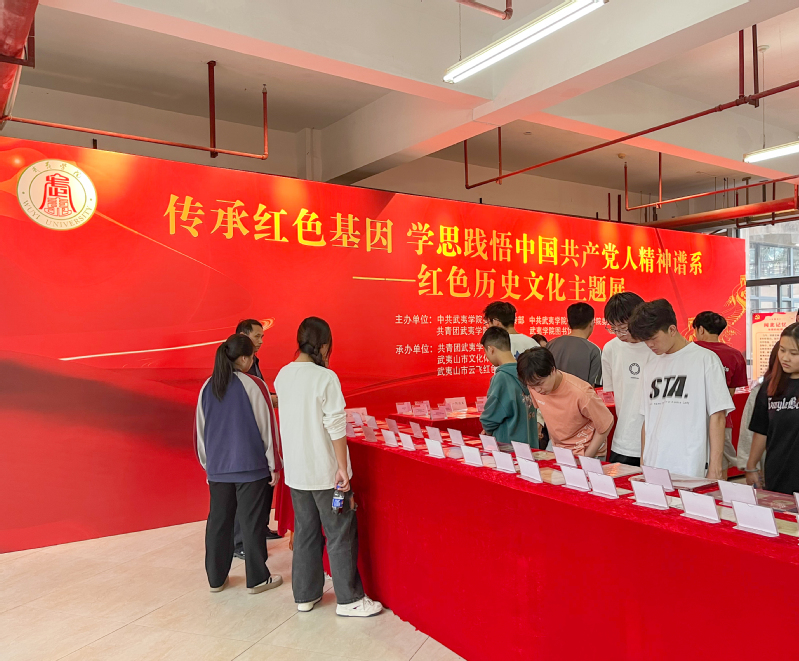 为庆祝中华人民共和国成立75周年,纪念红军长征出发90周年以及闽北红军成立95周年,继承和弘扬伟大建党精神,激发广大师生的爱国主义情感,11月12日,由校党委宣传部、机电工程学院党委、校团委、图书馆主办,机电工程学院分团委、武夷山市文体旅局、武夷山市云飞红色收藏博物馆共同承办的“传承红色基因、学思践悟中国共产党人精神谱系——红色历史文化主题展”在我校图书馆开展。