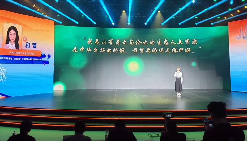本次大赛自今年4月启动,校党委宣传部和马克思主义学院精心筹备组织,结合2021年3月习近平总书记来武夷山考察时的重要讲话精神,选定《追寻习近平总书记“绿色足迹” 共览武夷山国家公园绿色答卷》主题,阐述近年来学校与地方深度融合、开展生态自然资源保护与利用的生动实践。遴选的和萱同学通过视频录制和现场宣讲方式参赛,经过与来自“九市一区”、省直单位共100多组选手进行比拼,最终荣获全省“三等奖”,对外展示了我校的办学特色,彰显了我校学子的风采。