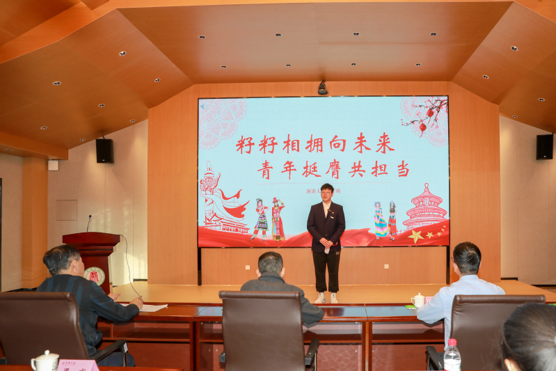 赛场上,10位选手围绕主题用真挚的情感和激昂的语言生动阐释作为新时代青年的使命与担当,通过讲述各民族共同团结奋斗、共同繁荣发展的动人故事,展现了中华民族大家庭的温暖与和谐,奏响了同心爱中华的时代强音,呈现了一场民族团结的文化盛宴。马克思主义学院副院长陈文教授对比赛进行点评。活动在全体师生齐唱《我和我的祖国》中落下帷幕。