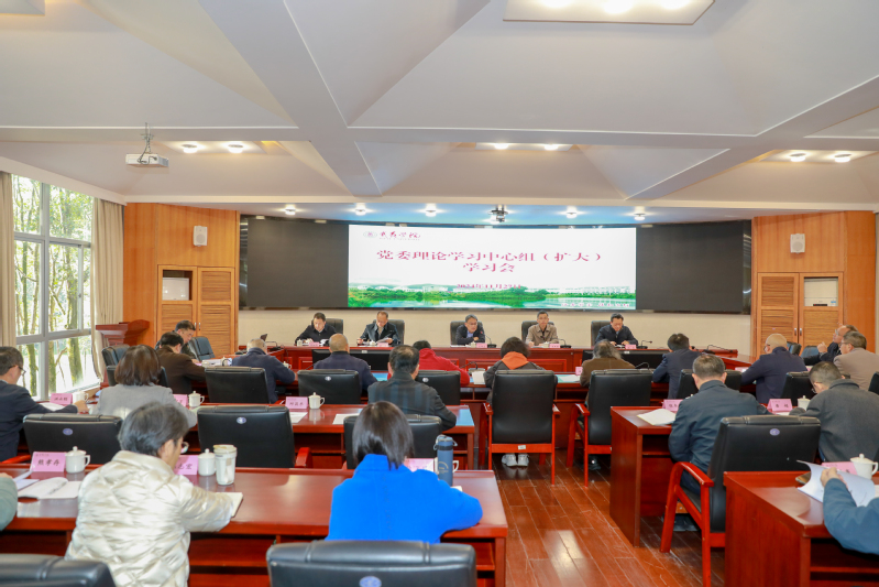 11月27日,校党委书记庄祥生主持召开党委理论学习中心组(扩大)学习会,专题研讨习近平法治思想,学习《中华人民共和国保守国家秘密法》。校领导吴承祯、梁方、杨昇、郑细鸣出席。