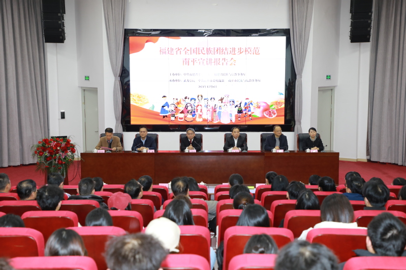12月6日,由中共福建省委统战部、福建省民族与宗教事务厅主办,武夷学院、中共南平市委统战部、南平市民族与宗教事务局承办的福建省全国民族团结进步模范南平宣讲报告会在我校举行。武夷学院党委书记庄祥生,南平市委副书记、统战部部长陈善平,武夷学院党委副书记梁方出席。