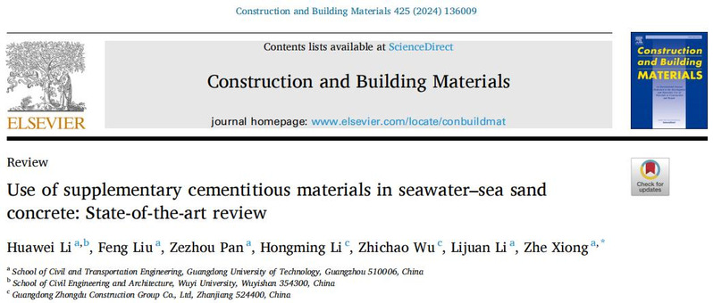 该研究成果以“Use of supplementary cementitious materials in seawater–sea sand concrete: State-of-the-art review”为题,发表于建筑科学领域国际权威期刊Construction and Building Materials(中科院一区top,IF=7.4),发表题为的高水平研究综述。李华伟为论文第一作者。