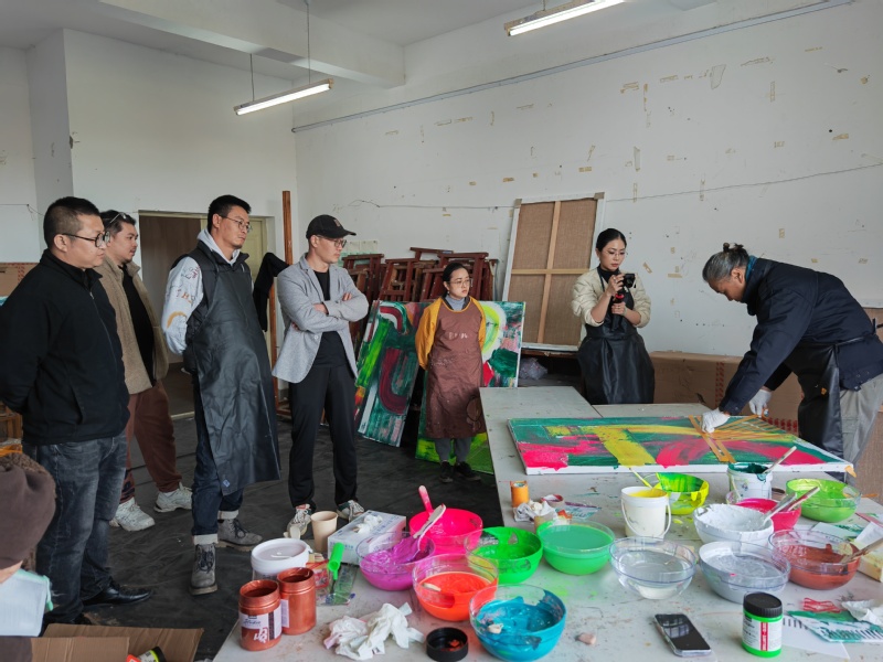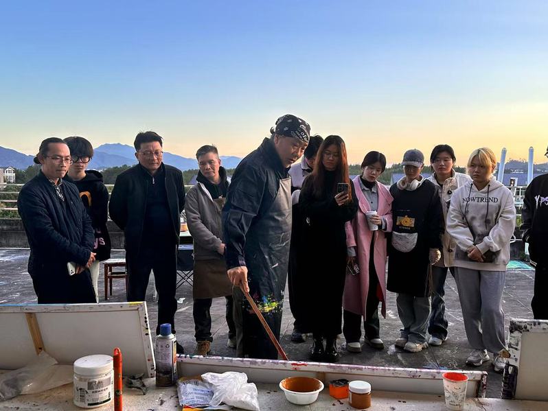 此外,唐承华教授还在艺术学院开展综合材料绘画教学。课堂上,他躬身践行“教学相长”理念,与师生一同投入艺术创作,激励师生在创作上勇于探索,彰显个性,提升创新思维,提高创造能力。他倾囊相授创作理念与技法,交流创作心得,点燃了武夷学院艺术学院师生的创作热情,为艺术学院综合材料绘画人才培养注入强劲动力。12月1日,“异质同构”综合材料绘画作品教学成果展在艺术学院展厅开幕。