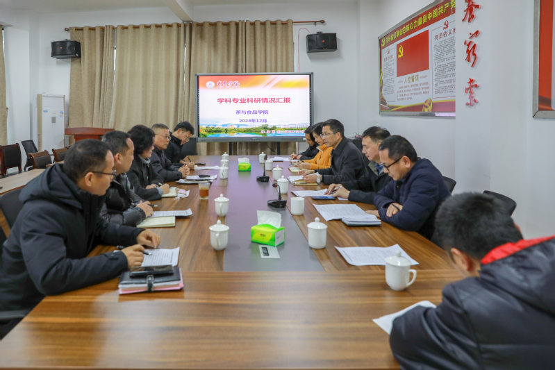 调研组听取了茶与食品学院学科专业科研建设情况汇报,就本科教育教学工作、科研提质、硕士点建设、产业学院服务地方等方面进行交流。