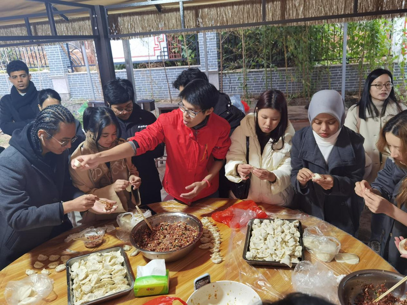 师生们系统地了解了建盏的历史渊源、制作工艺及艺术特点,深刻体会到中国非遗文化的精髓,也对中国传统文化的博大精深有了更深刻的认知。师生们前往学校汽车维修、现代制造、城市轨道交通运用服务及农机维修实训中心,对各实训基地的专业设置、教学特色及设备应用有了深入了解。同时,师生们参观了学校现代农业科普基地。深入了解基地的建设概况及学校在农业教育与乡村振兴实践中的探索成果。参观过程中,留学生们还与南平市农业学校足球队进行了一场友谊赛,切身感受中外文化交流的乐趣与意义。最后,师生们来到劳动教育实践基地,开展了一场别开生面的“饺子文化体验”活动。在南平市农业学校老师和学生的指导下,留学生们亲手尝试了包饺子,围坐在一起品尝这份“亲手制作的美味”,感受中国传统文化的温暖与魅力。