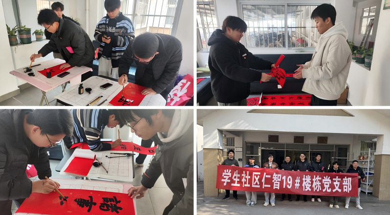 为弘扬和传播中华优秀传统文化,营造欢乐温馨、文明祥和的元旦文化氛围,兴贤3#和仁智16B#楼栋党支部共同开展“迎新送福”主题党日活动,支部党员们满怀热情,用多种写法书写传统“福”字,寄托着对新春的憧憬和向往,为广大师生送上最真挚的新年祝福。仁智19#楼栋党支部举办“新年送福”活动,召集社区内所有党员和书法爱好者,为社区同学们送去火红的对联和新春的祝福。瑞樟2#楼栋党支部开展“党员下宿舍,帮助你我他”志愿服务活动,学生党员深入宿舍,为身边同学答疑解惑,做好温书迎考准备。