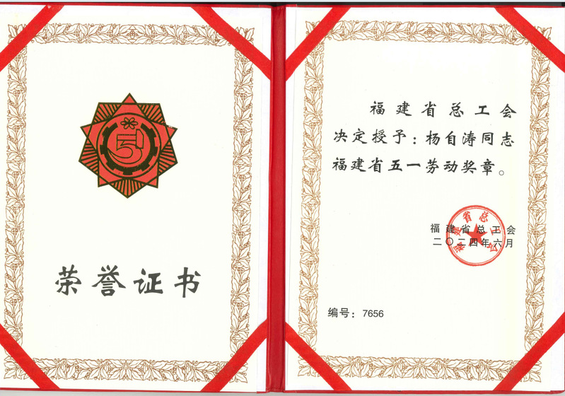 生态与资源工程学院杨自涛老师荣获2024年“福建省五一劳动奖章”