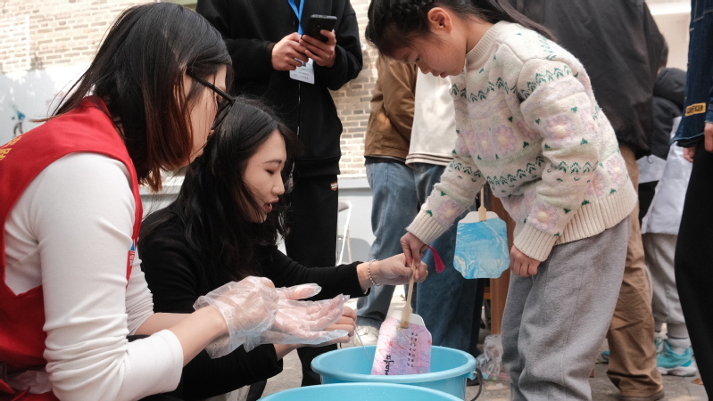 艺术学院志愿者们为村民带来了非遗文化体验活动。在非遗漆扇体验区,志愿者们详细介绍了漆扇的历史渊源、制作工艺及文化内涵,并指导村民亲手制作独一无二的漆扇作品。在DIY风筝活动区,村民们发挥创意,用颜料和画笔绘制个性化风筝。