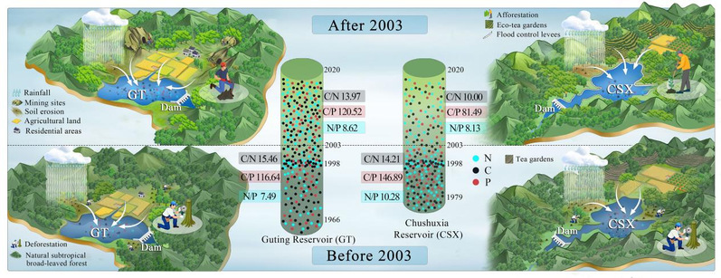 森林水库在气候调节、生态平衡和水文循环的维持中起着至关重要的作用。化学计量学是生态系统的一个基本特征,它为了解森林水库沉积物中碳(C)、氮(N)和磷(P)的沉积规律提供了重要指示。