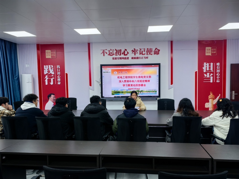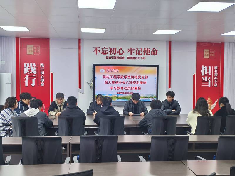 3月28日,机电工程学院党委召开深入贯彻中央八项规定精神学习教育动员部署会,学习贯彻习近平总书记关于深入贯彻中央八项规定精神学习教育的重要讲话和重要指示精神,传达学习中央、省委党的建设工作领导小组会议、校党委会议及相关文件精神,研究部署学院学习教育工作。会议由学院党委书记龚建金主持,学院领导班子成员、党委委员及各党支部书记参加会议。