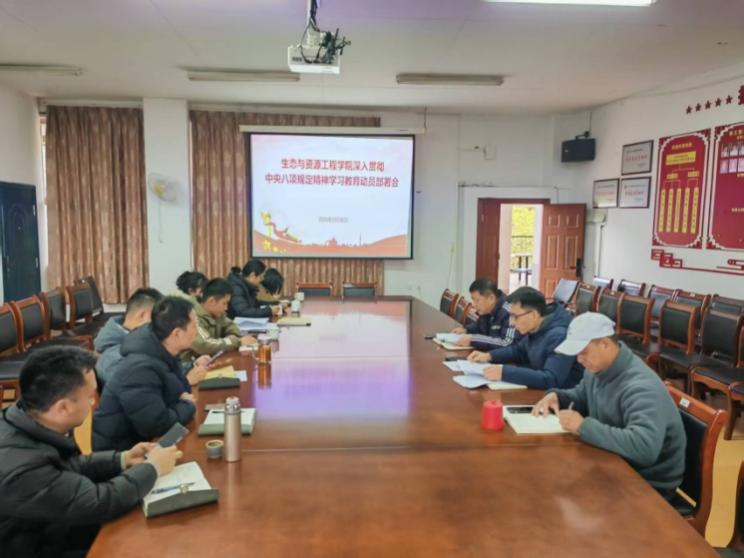 3月28日,生态与资源工程学院党委召开深入贯彻中央八项规定精神学习教育动员部署会,学习贯彻习近平总书记关于深入贯彻中央八项规定精神学习教育的重要讲话和重要指示精神,传达学习中央、省委党的建设工作领导小组会议及相关文件精神以及校党委工作部署要求,并研究部署学院学习教育工作。学院党委书记宋卫军主持会议,学院党委委员、党支部书记等参加会议。