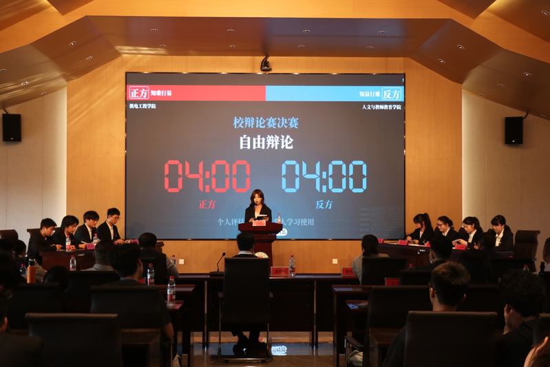 历经初赛、复活赛、半决赛的激烈角逐,机电工程学院、人文与教师教育学院、数学与计算机学院及商学院辩论队成功进入决赛。决赛现场正反双方紧扣“知难行易还是知易行难”的观点,为观众呈现了一场辩论盛宴。双方辩手们引经据典,从不同角度阐述观点,在立论、攻辩、自由辩论和总结陈词等环节中,思维的火花不断碰撞。犀利的提问、巧妙的反驳,让现场气氛迅速升温,观众也沉浸在紧张的辩论氛围之中。最终,人文与教师教育学院辩论队荣获一等奖,商学院辩论队荣获二等奖,数学与计算机学院辩论队荣获三等奖。