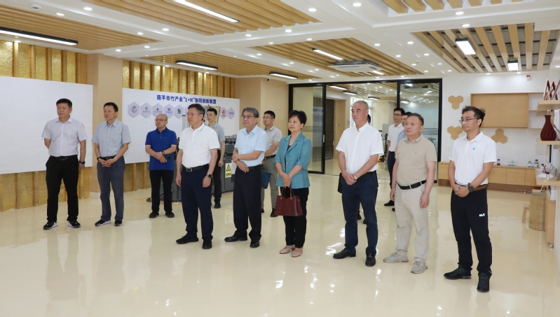 调研组实地察看了竹产业设计制造检测中心,详细了解中心队伍建设、管理运维、科技创新、成果转化的做法和成效。