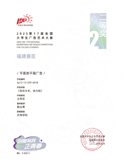 | 第十七届全国大学生广告艺术大赛(福建赛区)获奖名单 (武夷学院) | |||