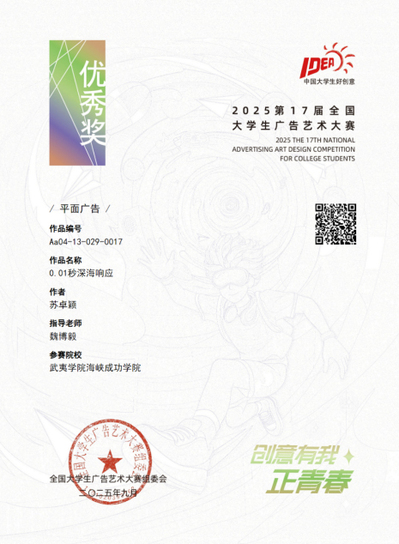 | 0.01秒深海响应 | 苏卓颖 | 魏博毅 | 国家级优秀奖 |