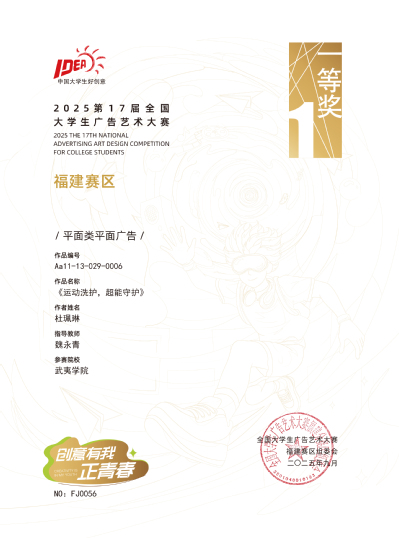 近日,全国大学生广告艺术大赛组委会公布了第16届全国大学生广告艺术大赛全国总决赛和福建赛区评审结果。在学校的高度重视和艺术学院的精心组织下,我校获奖28项,其中全国优秀奖1项,福建赛区一等奖2项、二等奖4项、三等奖3项、优秀奖18项。