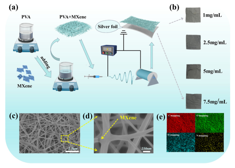 成果二:柔性MXene/PVA 纳米纤维膜可穿戴材料
