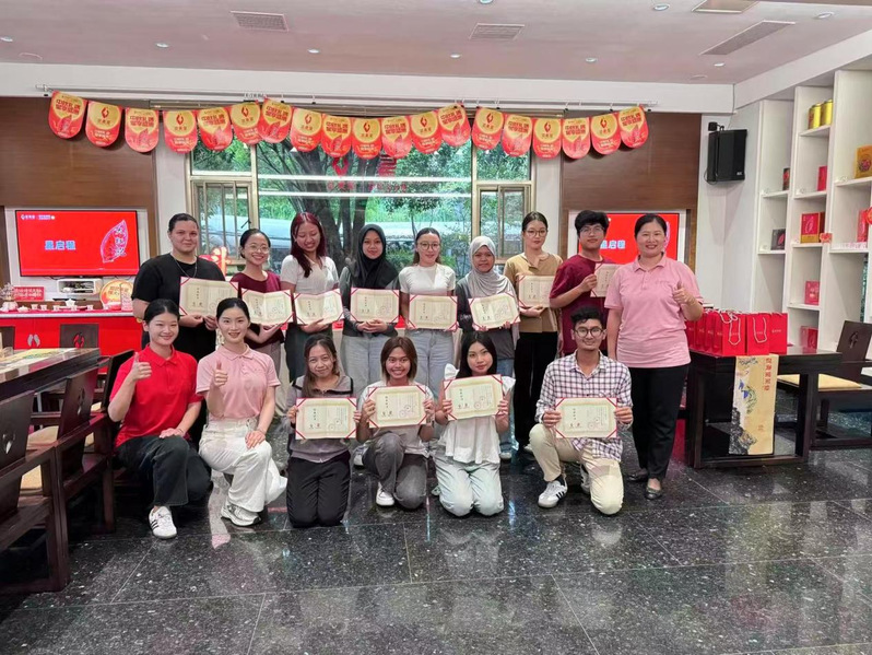 海外教育学院始终注重语言学习与文化实践相融合,此次校企合作也有效促进了资源共享与文化互通。武夷星茶业有限公司作为茶行业知名企业,为留学生们提供了真实、丰富、沉浸式的文化实践平台。企业讲师肯定了留学生们的学习热情与实践能力,尤其在品鉴与实操环节中,大家展现出良好的汉语沟通能力和文化理解力。一位来自印尼的留学生分享道:“这次实践让我更深刻地理解了中国人常说的‘人生如茶’的含义。茶不只是饮料,更是一种沟通的语言和礼仪的载体。”许多留学生也表示,通过亲身体验,不仅加深了对中国礼仪和茶文化的理解,提升了汉语实际运用能力,增强了对中华优秀文化的认同感和跨文化交际能力,也更坚定了成为中外文化交流使者的信心。