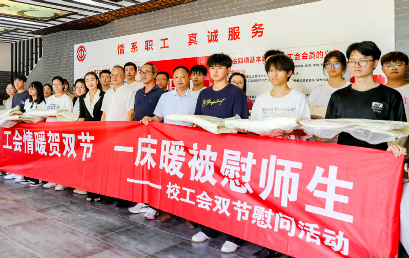 中秋月圆,国庆同辉。为进一步做实做细教职工关爱行动,将温暖与关怀切实送达师生心坎,9月25日,南平市总工会、武夷学院联合桐乡知名家纺品牌,共同开展一场温馨的“工会情暖贺双节 一床暖被慰师生”慰问活动。