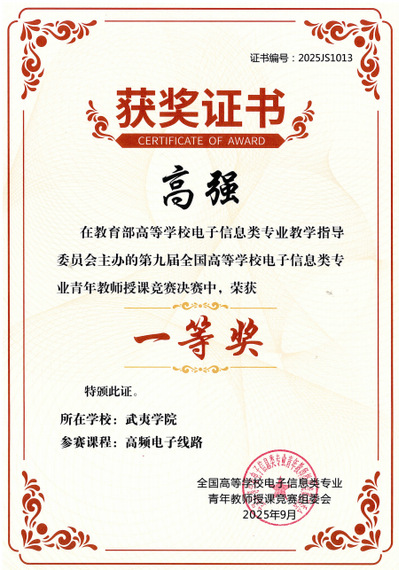 近日,第九届全国高等学校电子信息类专业青年教师授课竞赛决赛在长春理工大学落幕。经过激烈角逐,我校机电工程学院教师高强、徐涛分别斩获全国一等奖和全国三等奖。